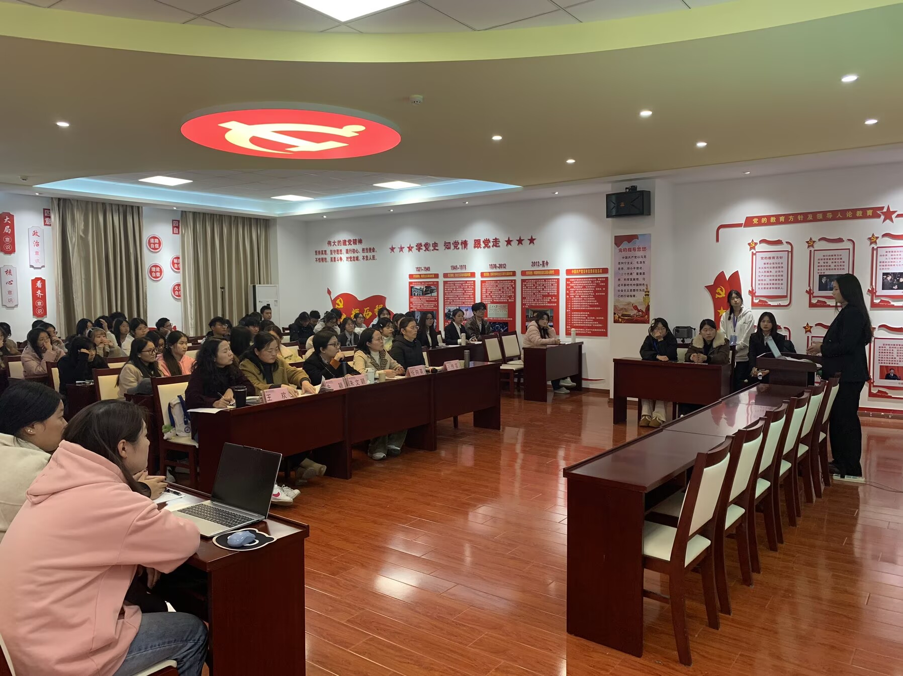 为助力员工明晰职业方向、提升参赛能力,12月5日,公司在经贸楼党性体验馆成功举办老员工职业生涯规划大赛专题讲座。本次讲座特邀新安人才网党总支书记朱文颖担任主讲人,全体辅导员和有意向参赛的员工共百余人参与此次活动。