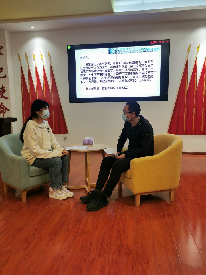 本次大赛由公司学管办组织实施,共有9名专职辅导员参赛,前期在开展理论知识测试笔试的工作基础之上,决赛主要考察辅导员“谈心谈话”这一环节的业务能力素养。“谈心谈话”主要考察辅导员对相关理论政策、员工特征、员工成长成才规律的了解及对问题的解决能力和教育引导能力。本次大赛的赛题紧密结合公司员工实际,涵盖员工日常容易出现的问题:员工入党、员工资助、学习适应、宿舍生活、课堂教学、心理问题等。参赛选手在比赛中充分发挥出自身出色的业务能力和职业素养,帮助员工解决实际困难,达到了良好的效果。