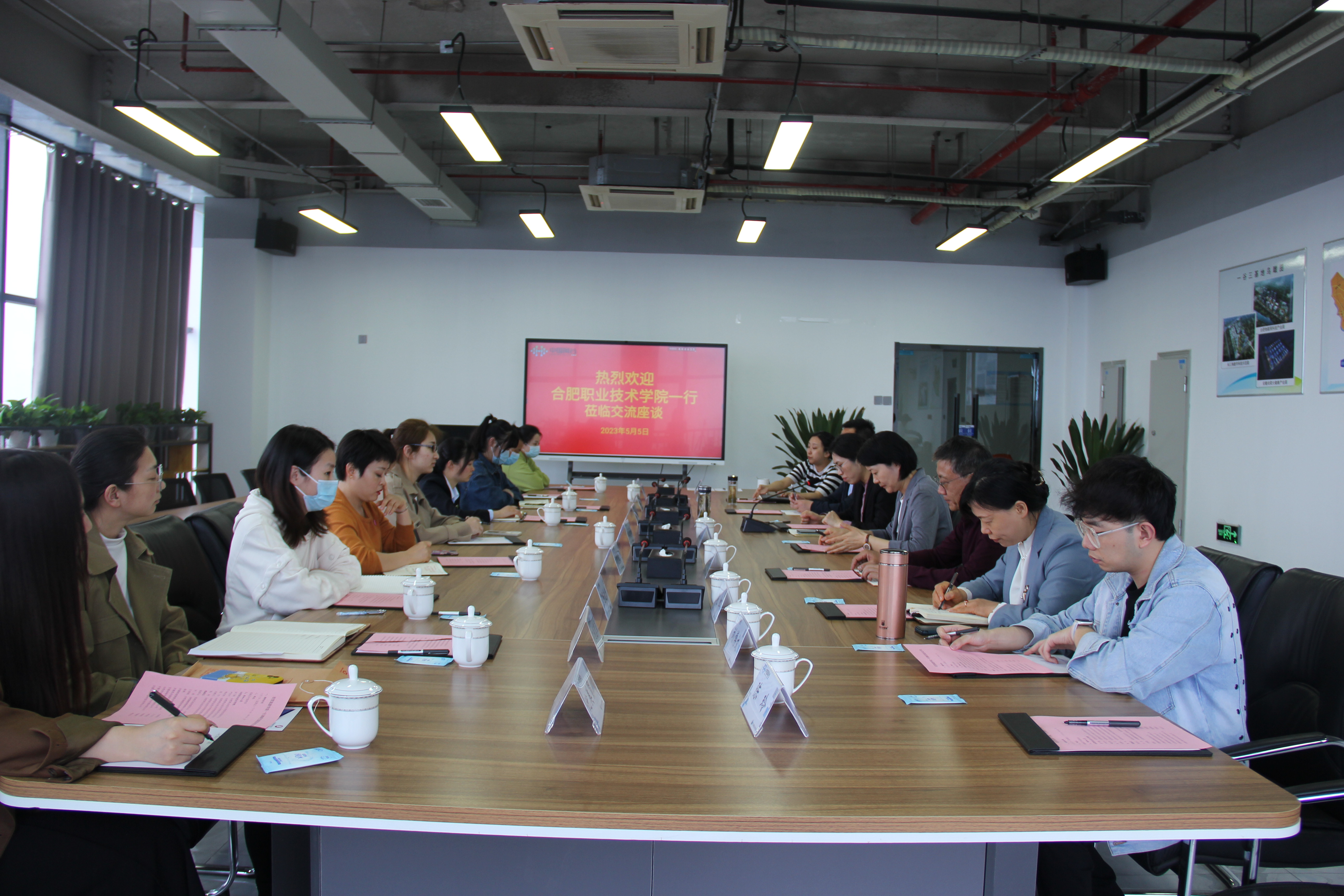 尹宗平向对方人员介绍了公司“国内一流、职教样板”的建设目标;并详细说明公司“学科专业、人才培养、校企合作、毕业生实习就业”等方面的基本情况与优势。他希望,通过访企与企业积极建立联系,在员工实习就业、订单培养、产业公司等方面开展深入合作,推动育才、用人精准匹配,实现互惠共赢、共同发展。