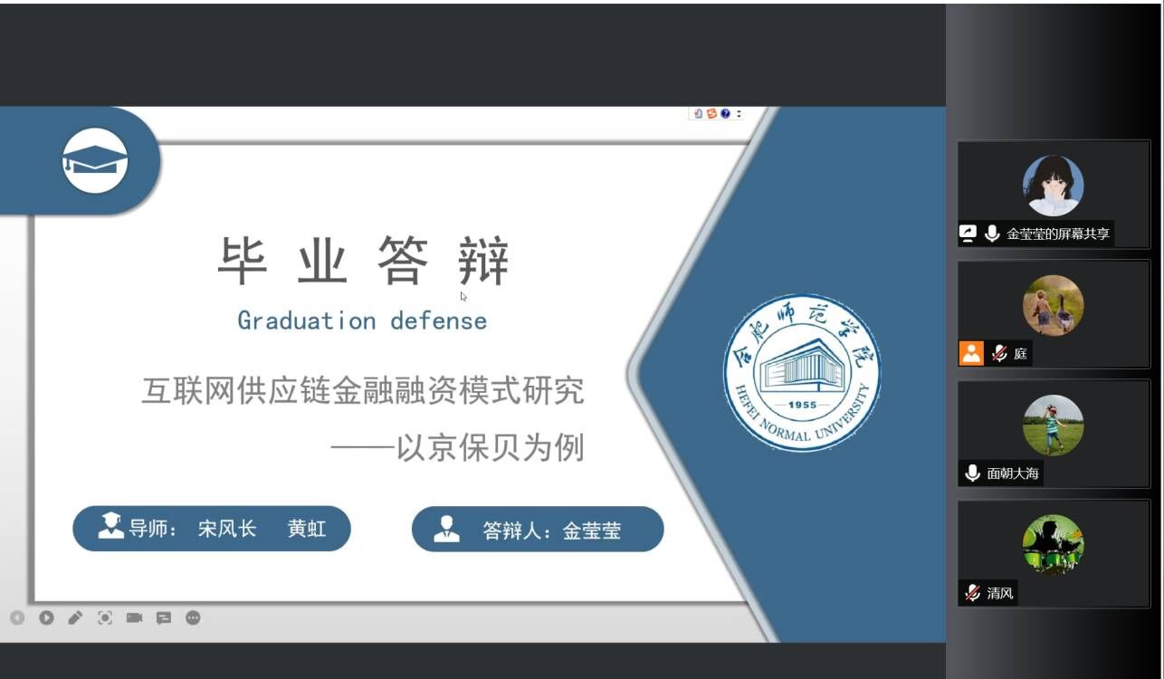 5月18日、5月21日和5月25日,best365官方网站与合肥师范公司联合培养的首届经济与金融专业(专升本)112名同学利用腾讯会议平台以线上答辩的方式进行了毕业论文预答辩(2场)和补答辩(1场)。