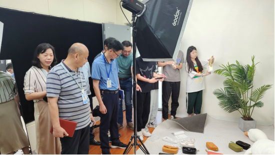 调研中,周晓隆一行参观了双创班的直播基地和电商运营中心,深入了解员工实训情况和正在运营的各类项目。