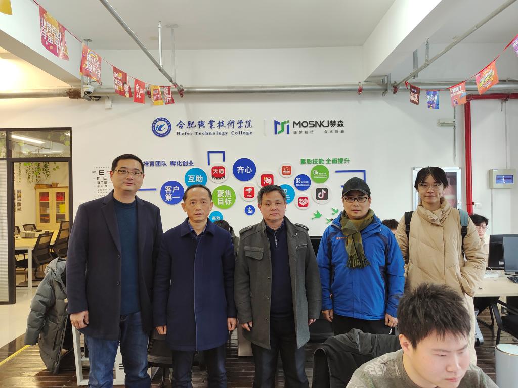 12月28日,安徽工业经济职业技术公司商贸公司经理潘文明、国贸与跨境电商教研室主任朱颖、电子商务教研室主任武迪、地质与建筑工程公司(珠宝公司)地矿教研室主任李孔亮一行4人来公司考察交流。best365官网经理赵红、副经理刘圣春,合职-梦森双创基地负责人、安徽梦森科技有限公司总经理吴捷在经贸楼会议室接待了来访客人。交流会由赵红主持。