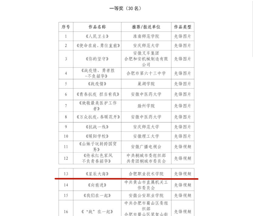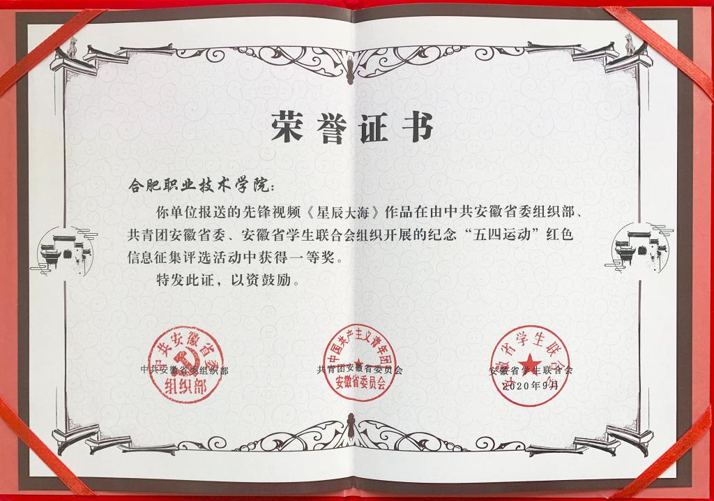 近日,由best365官网团总支剪辑制作、校团委选送的先锋视频作品《星辰大海》在安徽省组织的纪念“五四运动”红色信息征集活动中荣获一等奖。