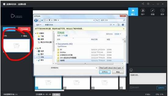 点击文档添加,可一边直播,一边推送相关文档。