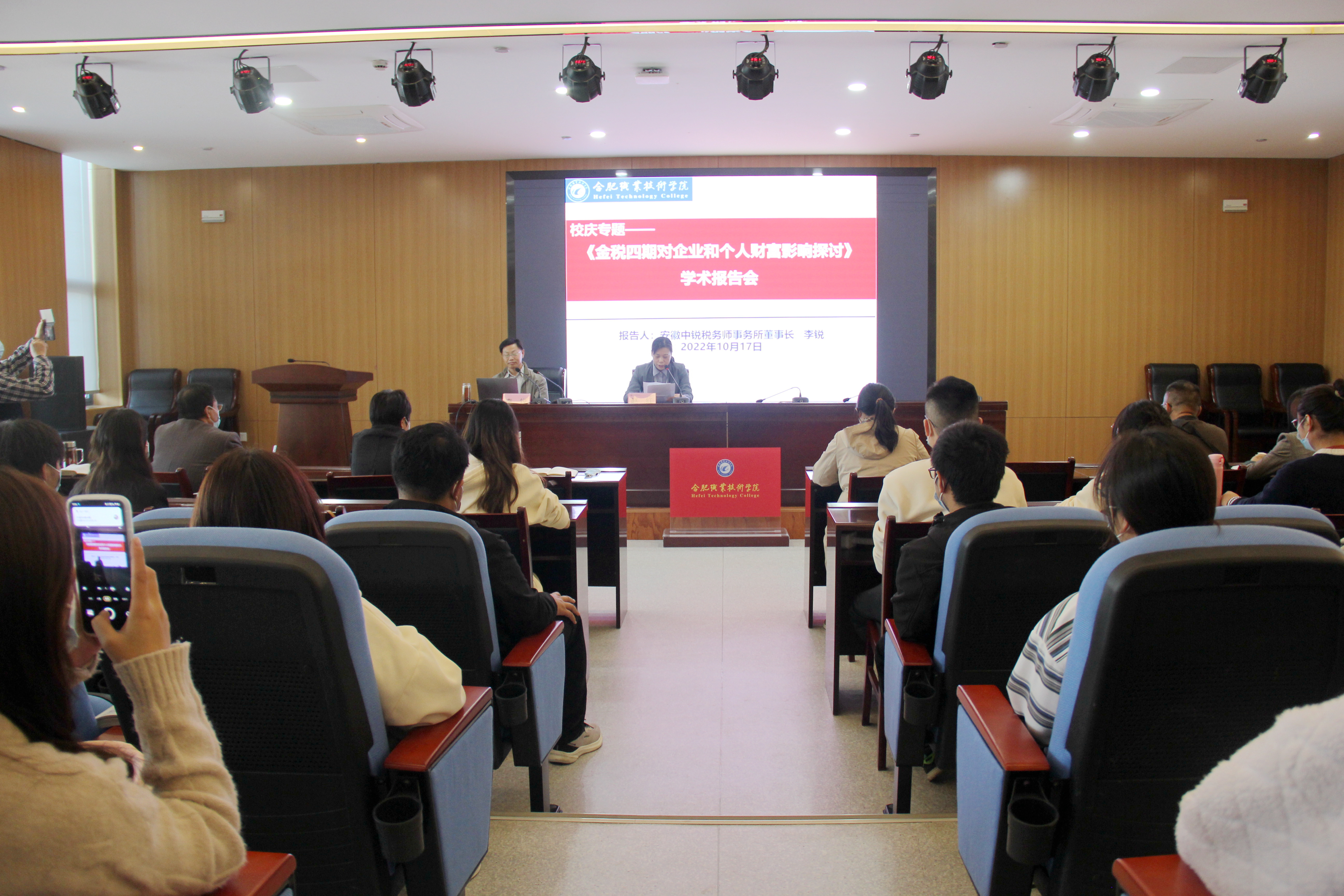 为庆祝二十周年校庆,营造浓厚的校园学术氛围,使公司师生了解金税四期对企业和个人财富影响,10月17日下午2点,由best365官网举办的题为“金税四期对企业和个人财富影响探讨”的学术报告在汇心湖校区图书馆一楼报告厅召开。此次学术报告特邀主讲人是公司杰出员工,85财校班学子,安徽中锐税务师事务所董事长李锐。李锐董事长是安徽财经大学硕士生导师,注册会计师、注册资产评估师、税务师、国际内部审计师、澳大利亚公共会计师(MIPA),担任中国注册税务师协会常务理事、安徽省注册税务师协会法人兼副会长、安徽省总会计师协会副会长,并担任多家上市公司独立董事。