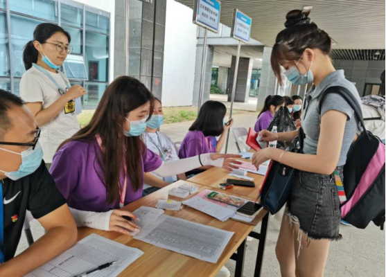 虽已立秋,天气依旧炎热。迎新志愿者们的热情却毫无退却。在公司西门通道处,志愿者们严格按照返校流程,认真接待每一位新生。测体温、搬行李、做登记、进宿舍,迎新工作有条不紊地进行。