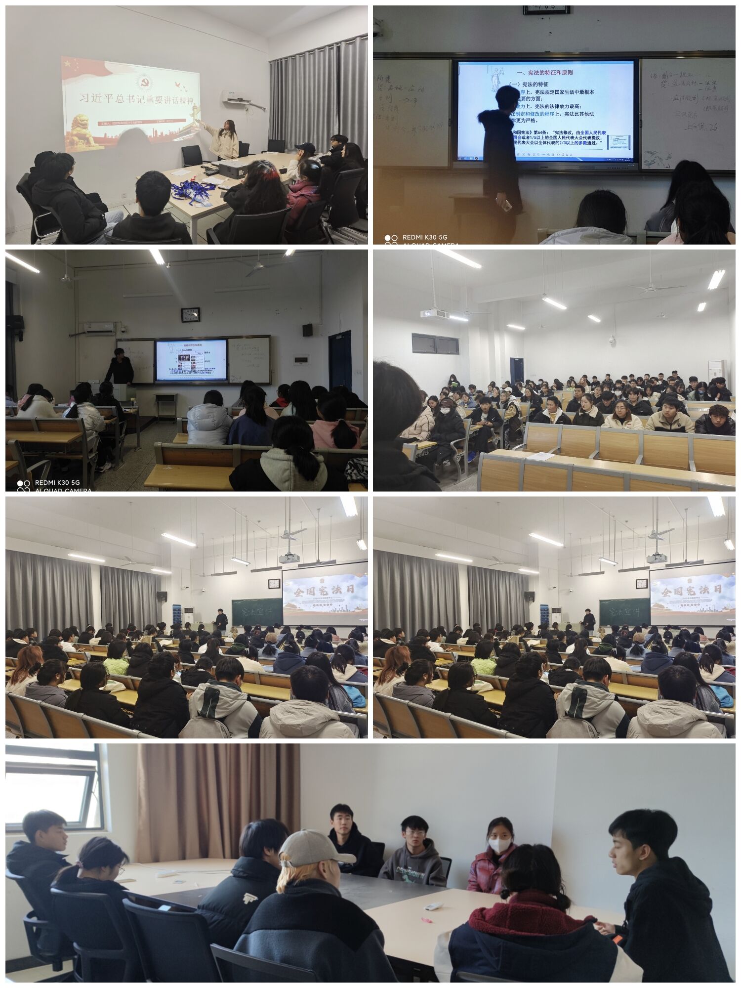 这次宣传周的活动包括:全国宪法日知识讲座、法治知识手抄报、习近平法治思想座谈会。公司社团根据校团委的倡议,在学习宪法基本知识的同时,向全校青年老员工发出倡议:从自己做起,从身边小事做起,自觉做到学法、知法、守法、用法,做推广宪法,遵守宪法的时代青年。