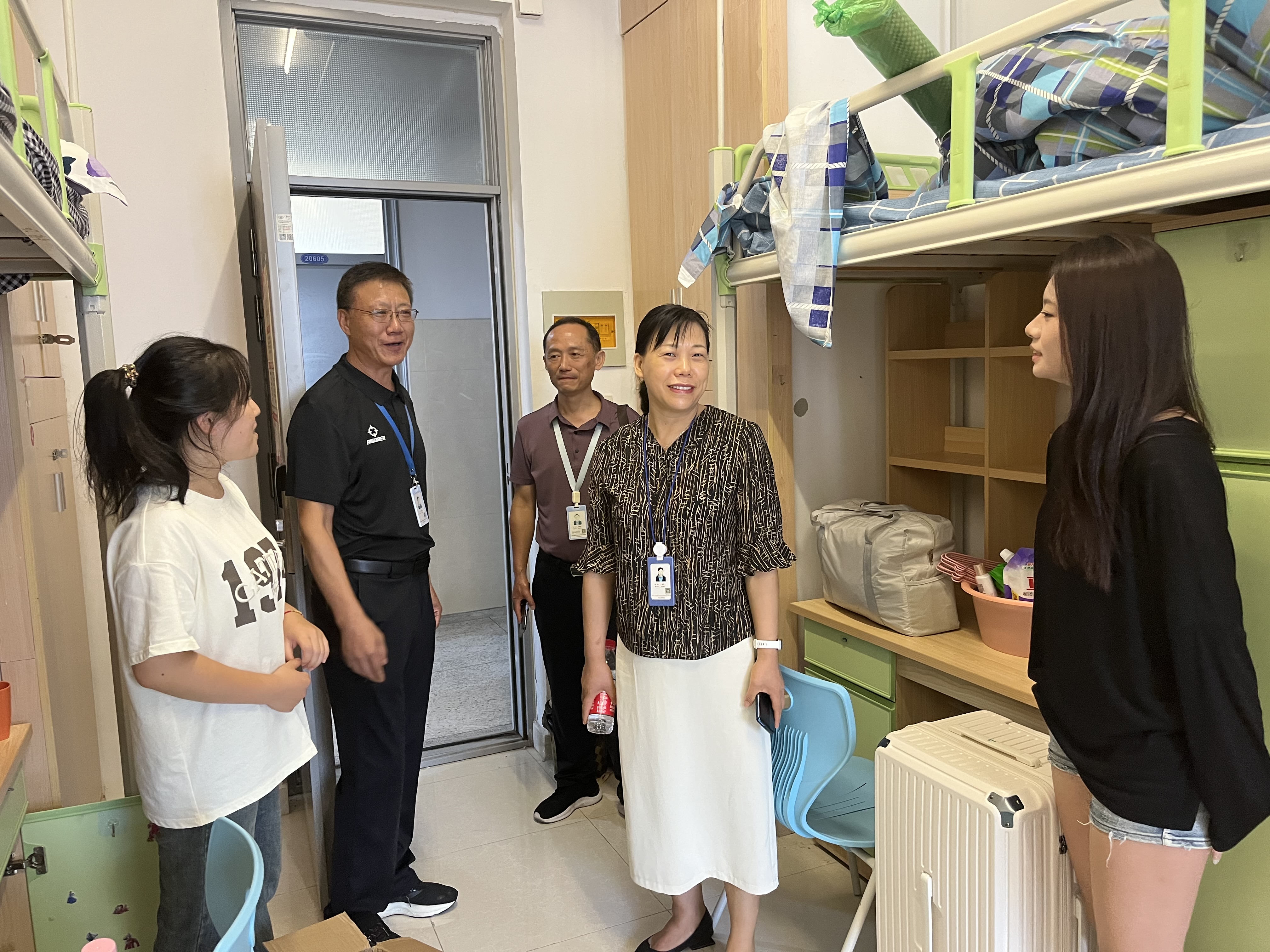 10日下午,best365官网领导班子和辅导员深入员工公寓看望23级新生,询问同学们的住宿情况,为新生送上最真挚的祝福。公司领导、辅导员和志愿者们无微不至的关系和爱护,让每位学子充分感受到了经贸大家庭的温暖。一位新生表示:“学姐学长们的热情接待,消除了我初来乍到的陌生感。对接下来的校园学习生活充满期待和信心。”