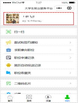 1、进入【服务】页面如图3-1所示,显示多种就业信息通道。
