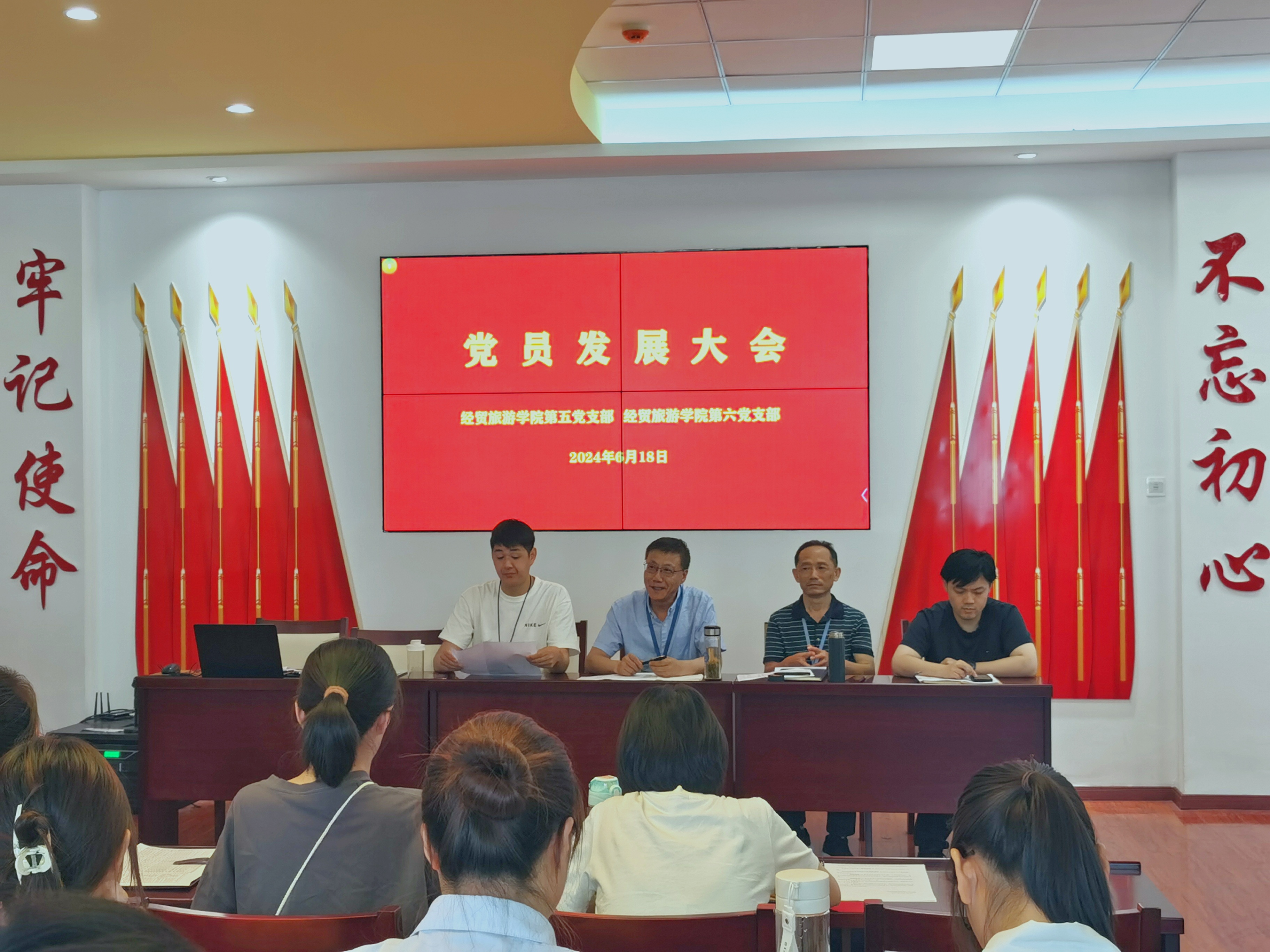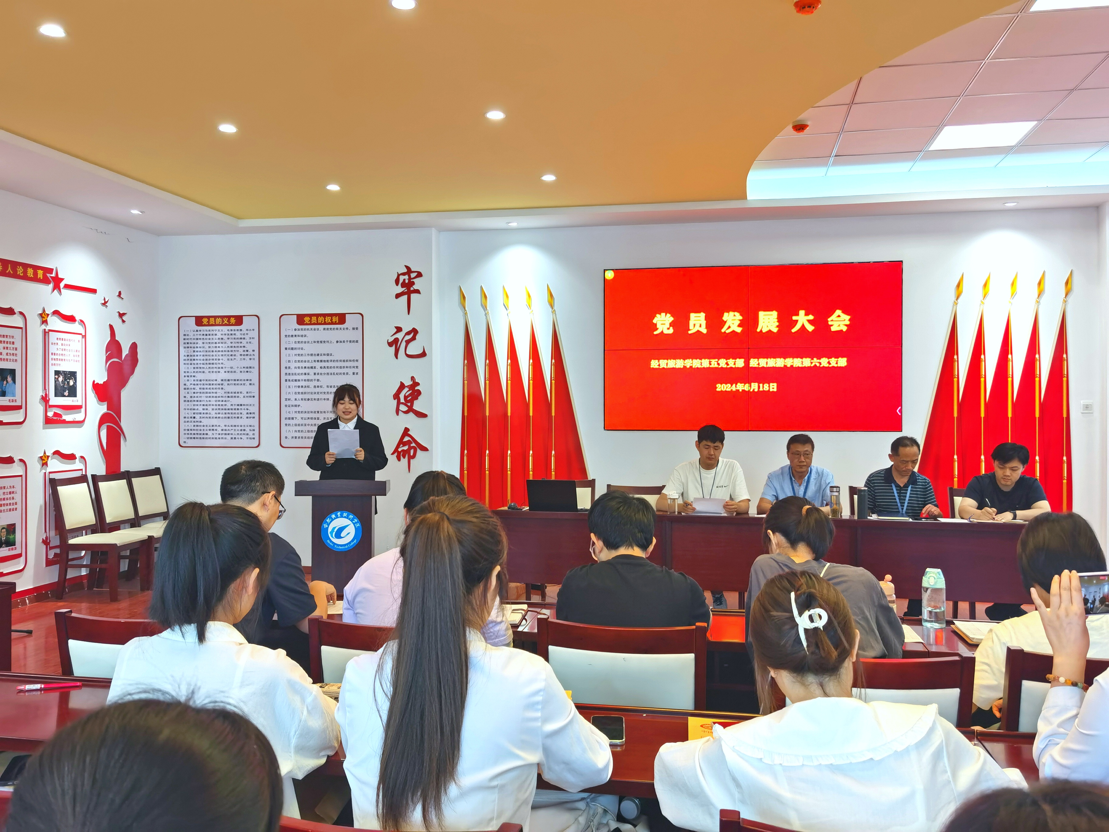 6月18日下午,best365官网第五党支部、第六党支部在经贸楼三楼党性体验馆召开党员大会,讨论接收闫雨牧等23名同志为中国共产党预备党员。会议由第五党支部书记王明明主持,两个支部的全体党员参加了会议。