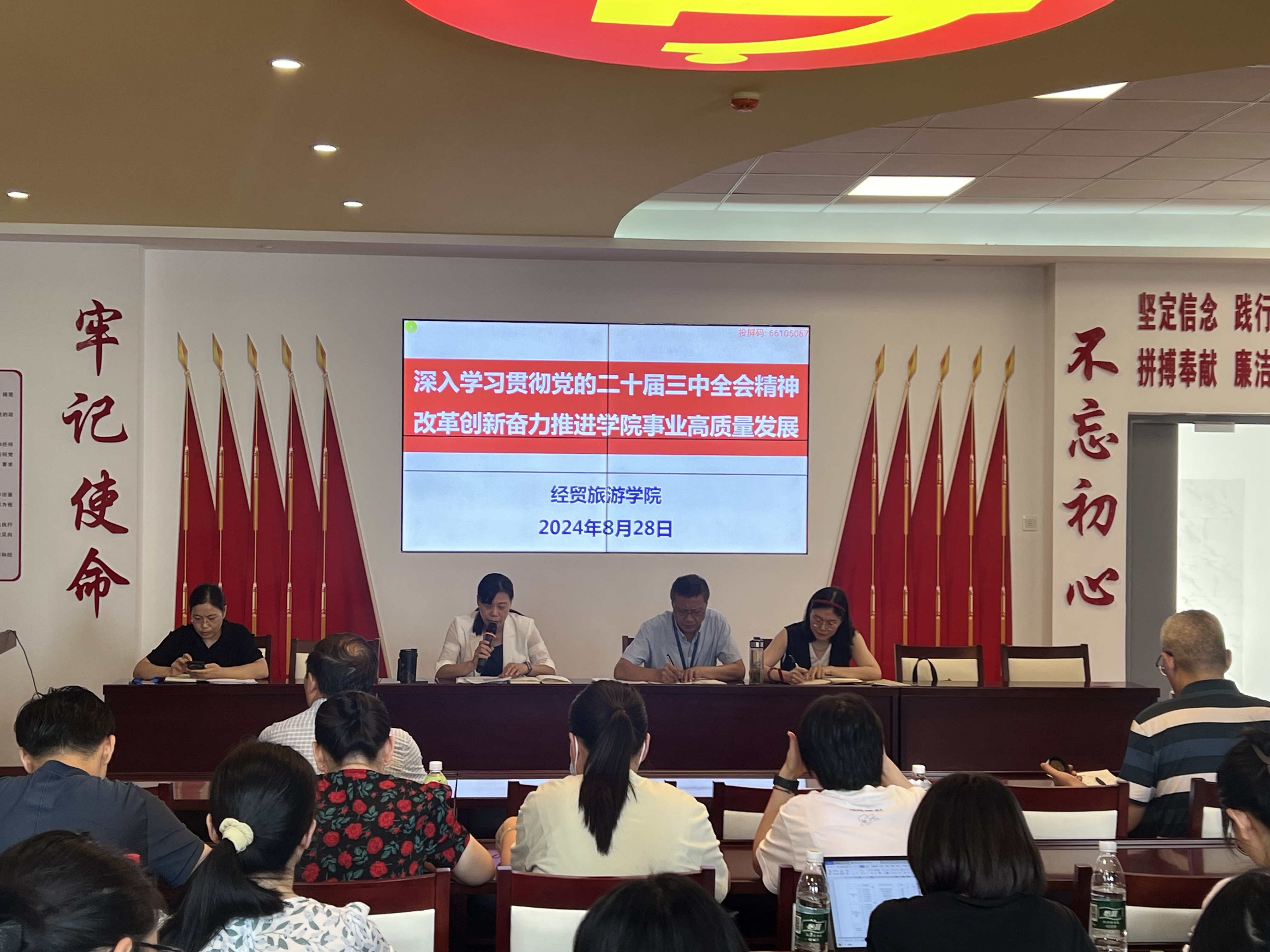 为不断提升教职工政治素养,统一思想认识、凝聚奋进力量,明确新学期工作任务,8月28日下午,best365官网在党性体验馆召开政治理论学习会暨2024-2025学年第一学期开学第一次教职工大会。公司党政和全体教职工参加会议,会议由经理赵红主持。