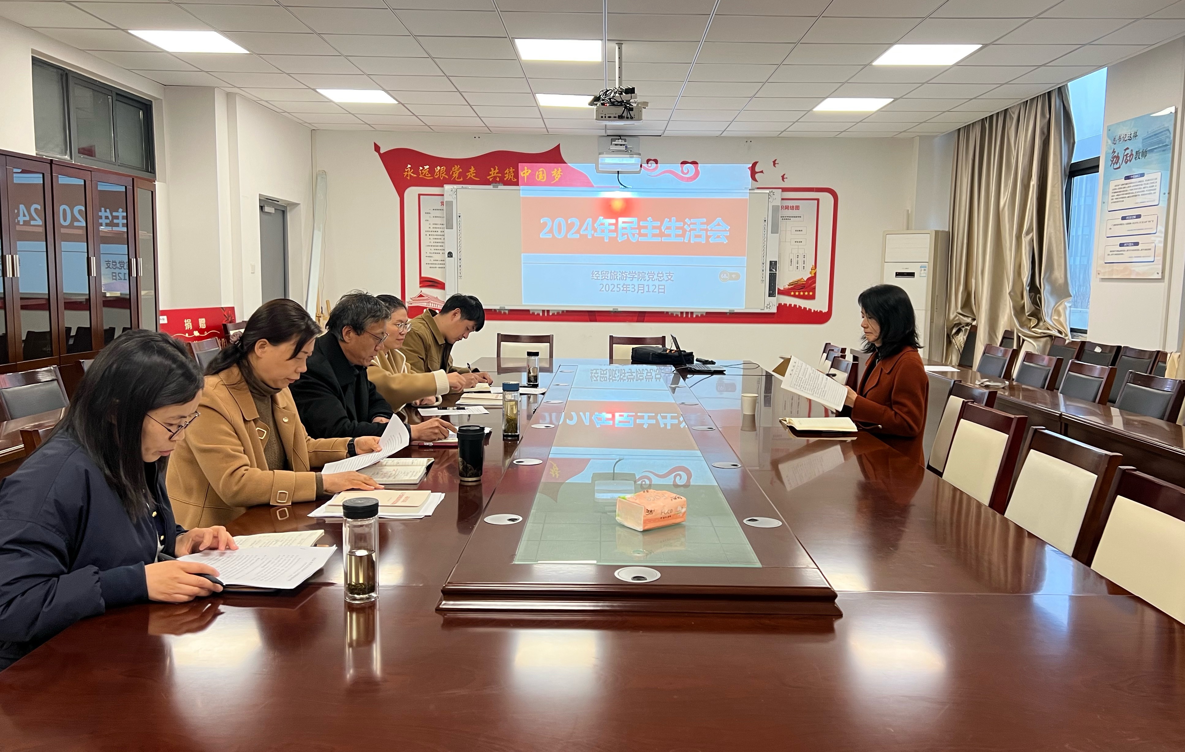 3月12日下午,经贸旅游公司党总支在经贸楼党员活动室召开2024年度领导班子民主生活会。公司党委副书记金飞燕到会指导,全体领导班子参加会议。会议由党总支书记梅亚松主持。