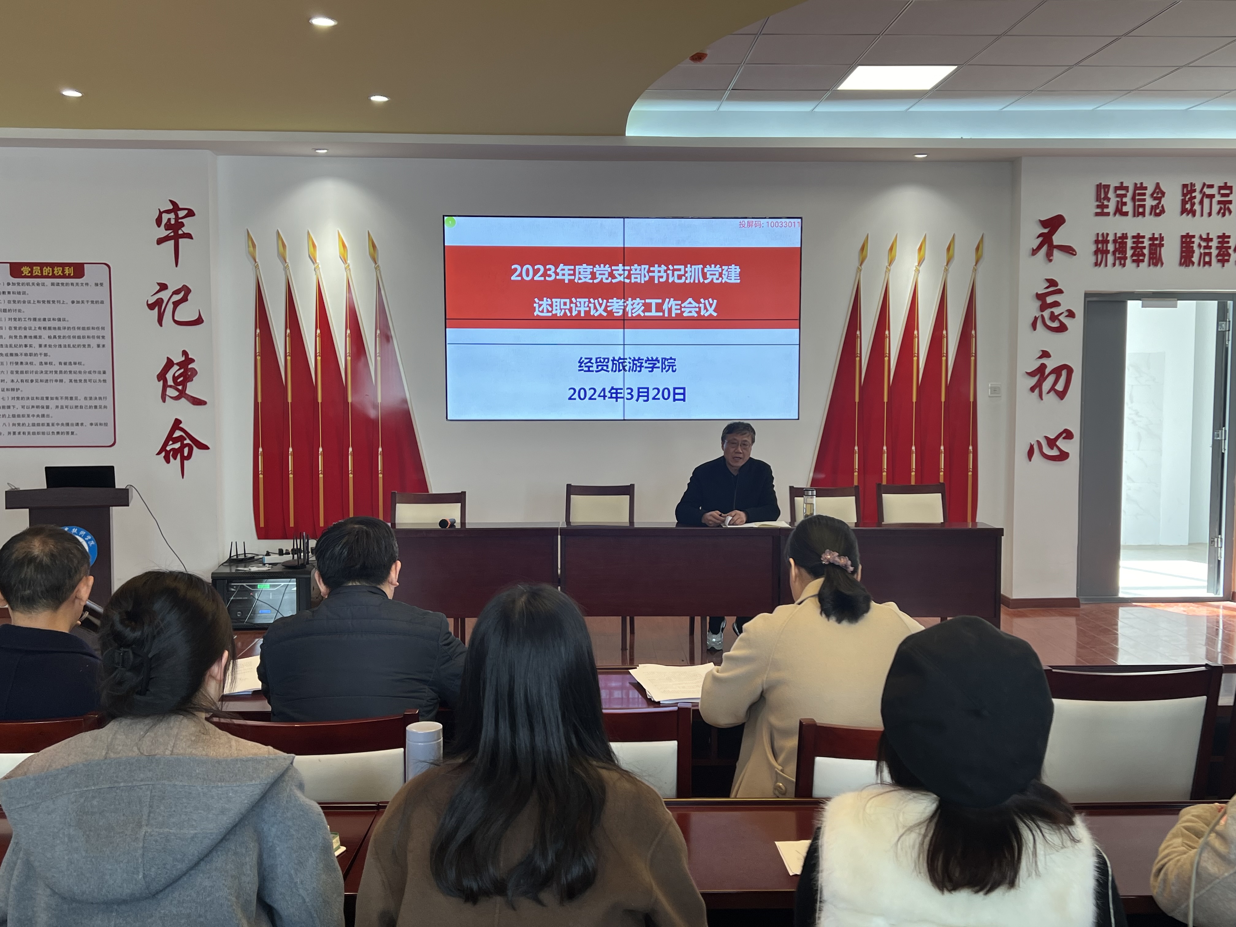 为深入学习贯彻习近平新时代中国特色社会主义思想和党的二十大精神,推进全面从严治党向纵深发展,夯实党建工作基础,落实管党治党责任,以高质量党建引领公司高质量发展。3月20日下午,经贸旅游公司党总支组织召开所辖党支部书记抓党建工作述职评议会,公司党政领导、各部门负责人、各党支部书记、党员同志、民主党派代表和群众代表参加会议,会议由党总支书记梅亚松同志主持。