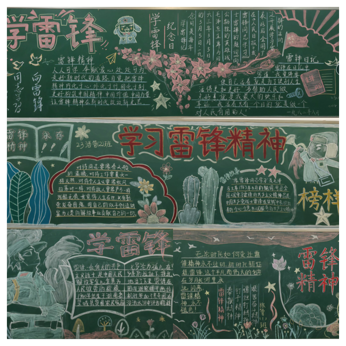 本次雷锋月黑板报设计覆盖23级各团支部。活动中,各团支部的高度重视,师生们积极参与,充分利用黑板报宣传阵地,对雷锋生平事迹、雷锋时代精神进行了全方位的宣传,内容丰富多彩、主题鲜明突出。在设计板报的同时,同学们更加深刻地体会到雷锋精神,从而更好地向雷锋学习。