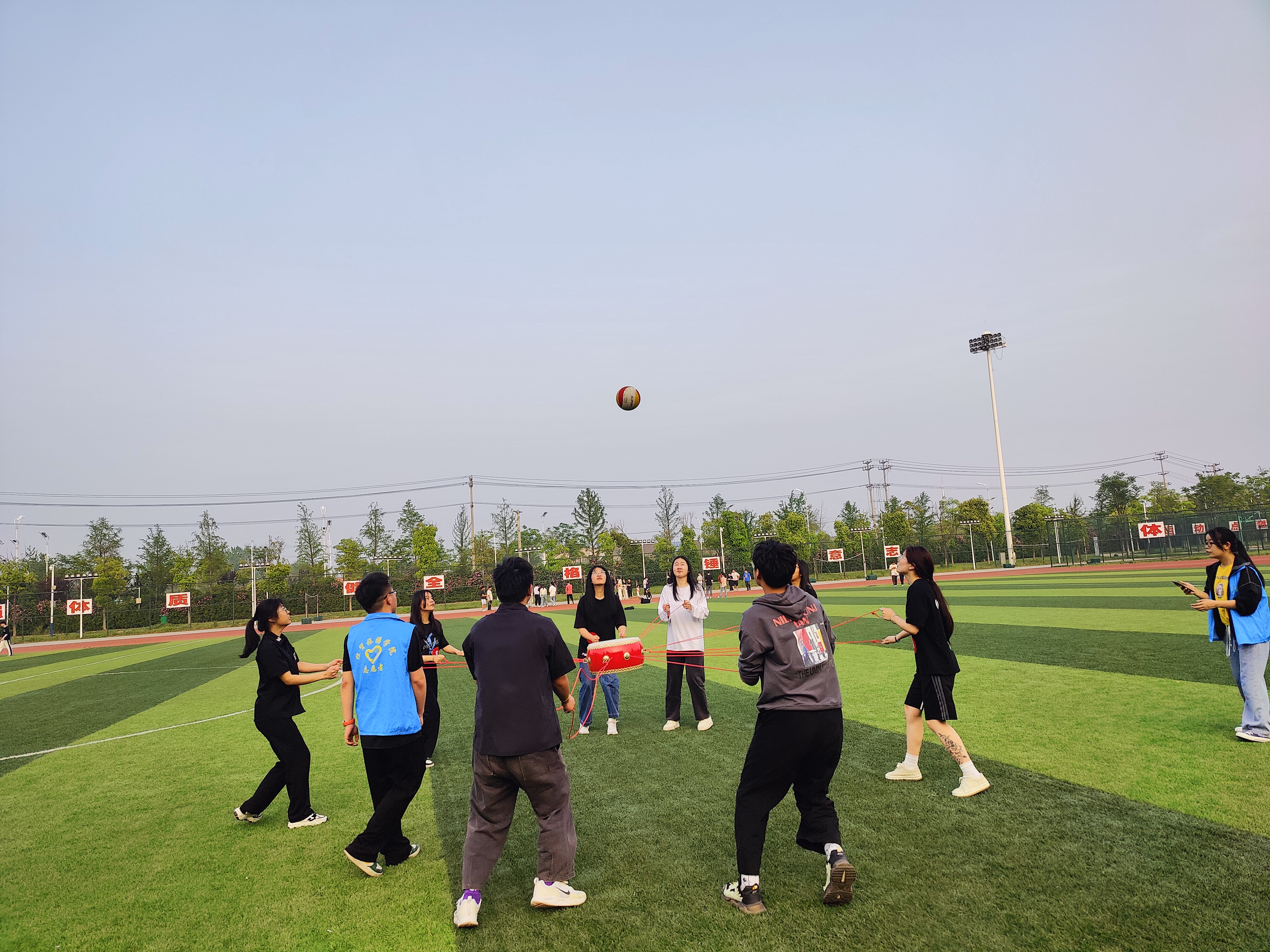 本次趣味心理运动会一共有四个项目,分别是击鼓颠球、珠行万里、接力营救和绳舞飞扬。活动以八人一组为单位报名参加,比赛采取团队积分制。活动现场,志愿者们早早准备好了比赛的道具分散在四个位置等待队伍上场,16支队伍在以打卡的方式依次参与每项活动。