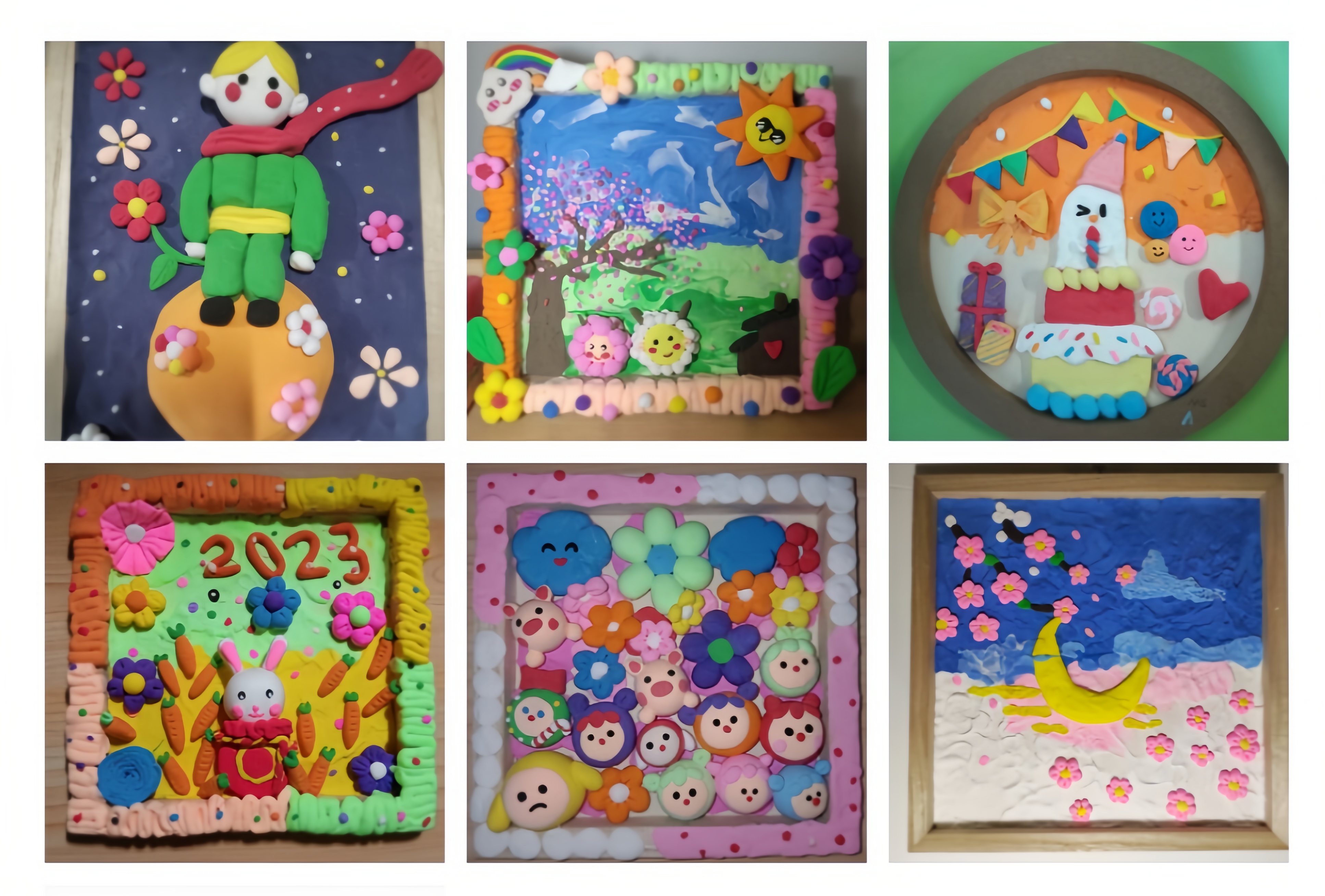 活动过程中,心理部的志愿者们维护着现场的秩序,创作者们充分发挥自己的想象力和创造力,通过揉、搓、捏、贴等指法,把黏土塑造的惟妙惟肖、栩栩如生;不同颜色的黏土在同学们的巧手下摇身一变为一幅幅五彩缤纷的画作,有月球上的小王子、樱花树下的小羊羔、可爱的小白兔……大家相互欣赏作品,合影留念,其乐融融。