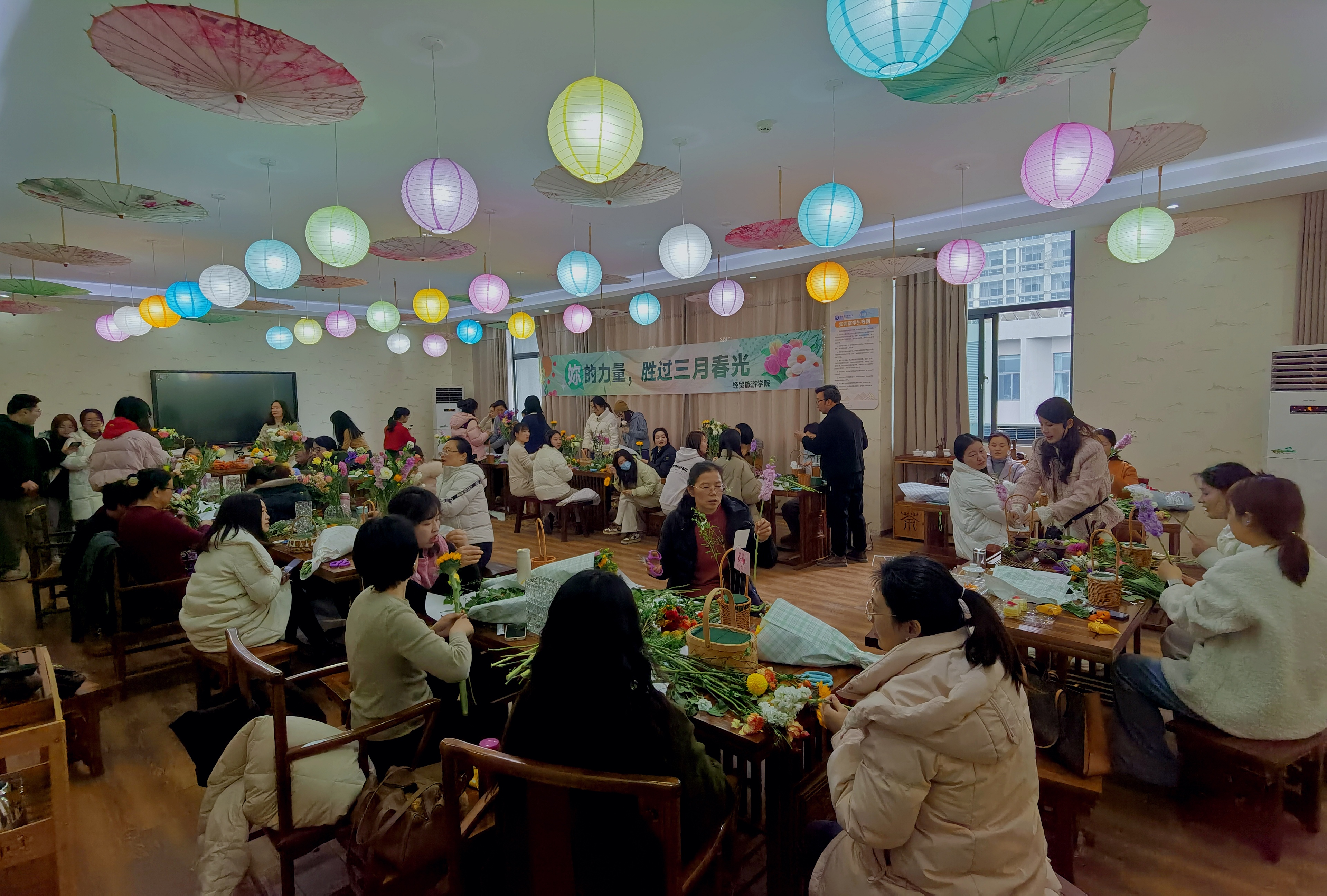品茶、插花、交流,释放工作生活压力,共享艺术之美。为庆祝"三八"国际劳动妇女节的到来,3月5日下午,best365官网分工会在茶艺实训室举办主题花艺手作活动。公司党政班子到场祝贺,40余名女教职工共赴春日花事,以花为媒共享节日祝福。