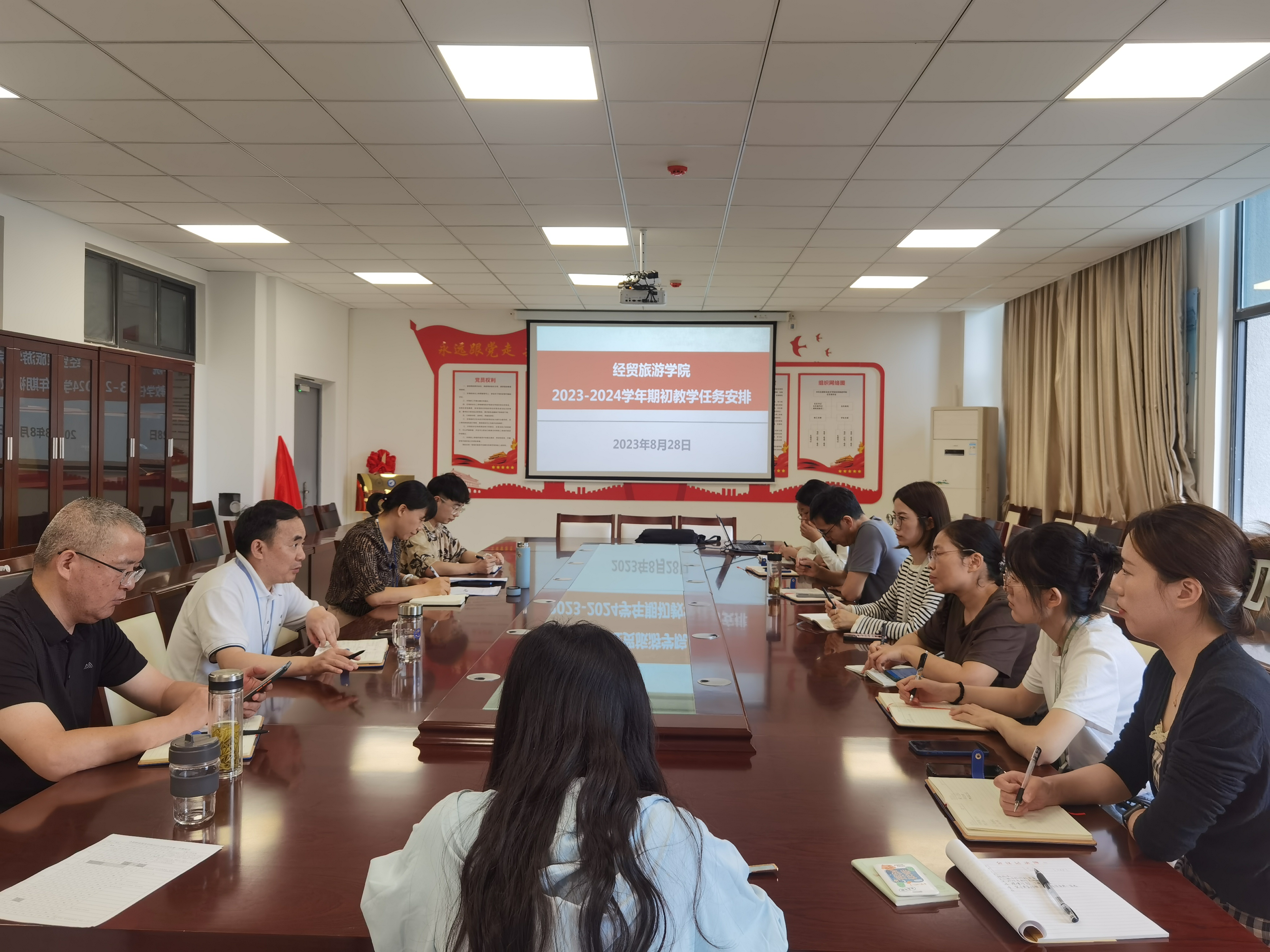 盛夏忽已暮,浅秋正渐浓。8月28日新学期工作第一天,best365官网在经贸楼305会议室召开新学期第一次教学工作安排会议,公司经理赵红、副经理陈继林、各教研室主任以及全体教学管理办公室、综合管理办公室人员参加会议。会议由赵红经理主持。