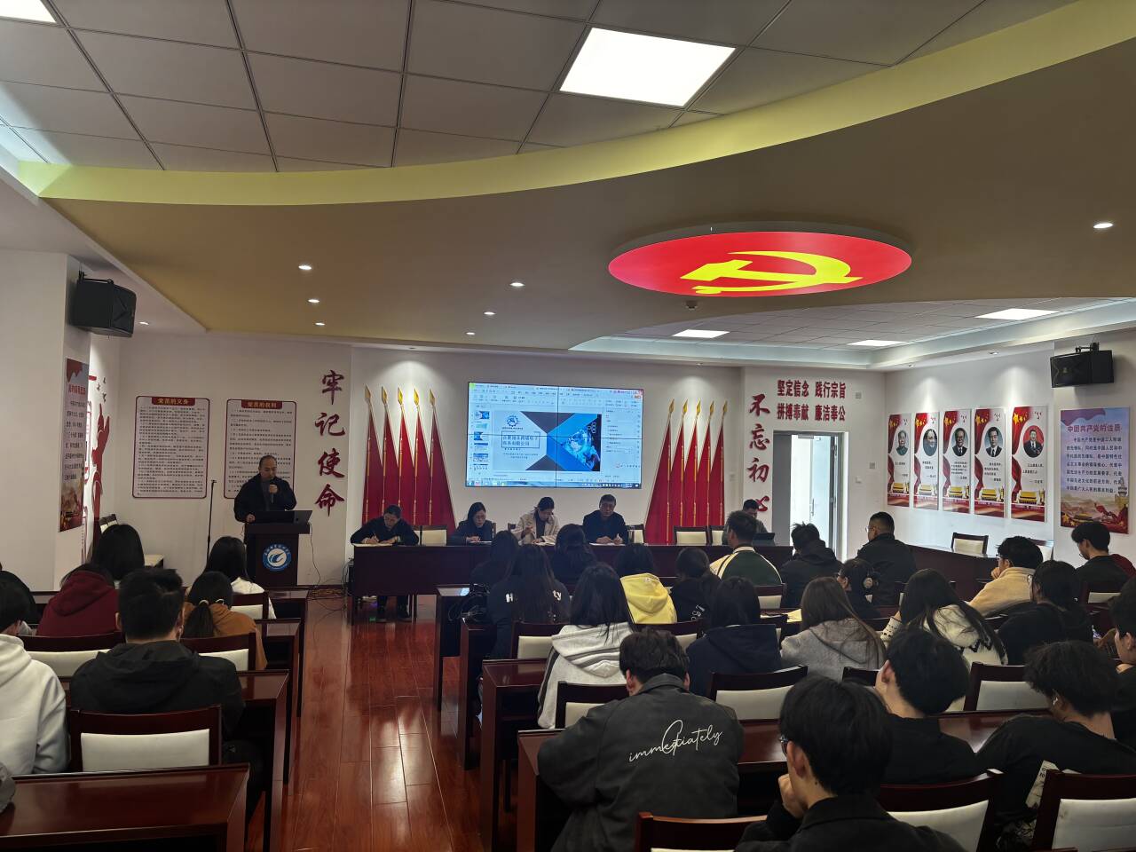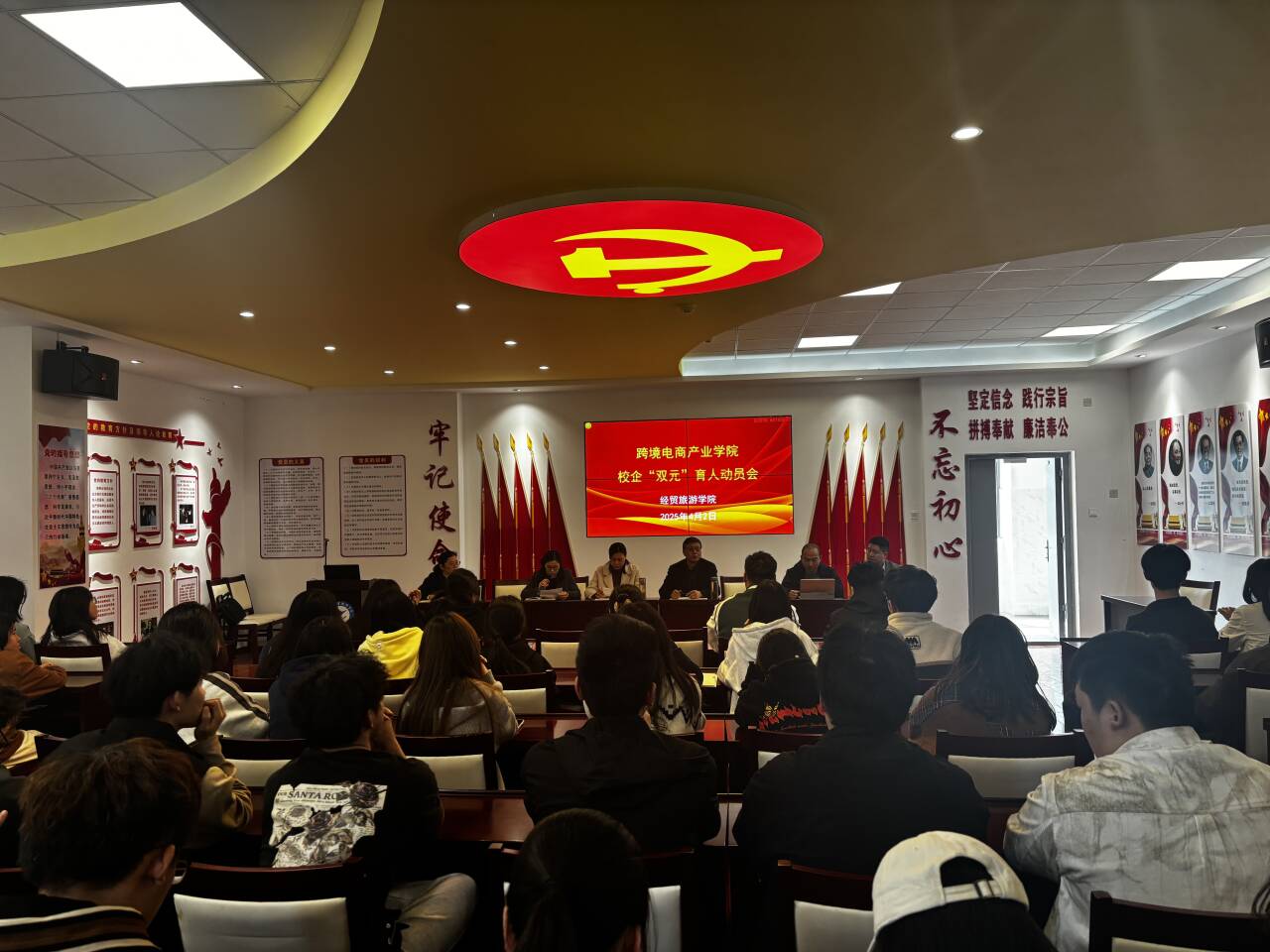 4月2日下午,23级电商专业课程实践教学项目改革推进会在经贸楼三楼党性体验馆召开。会议由付经理主持,公司书记梅亚松、公司经理赵红、企业管理团队、教学办相关负责人、23级电商专业任课教师、项目负责人、电商教研室主任及副主任、辅导员以及23级电商专业全体员工共同参会。