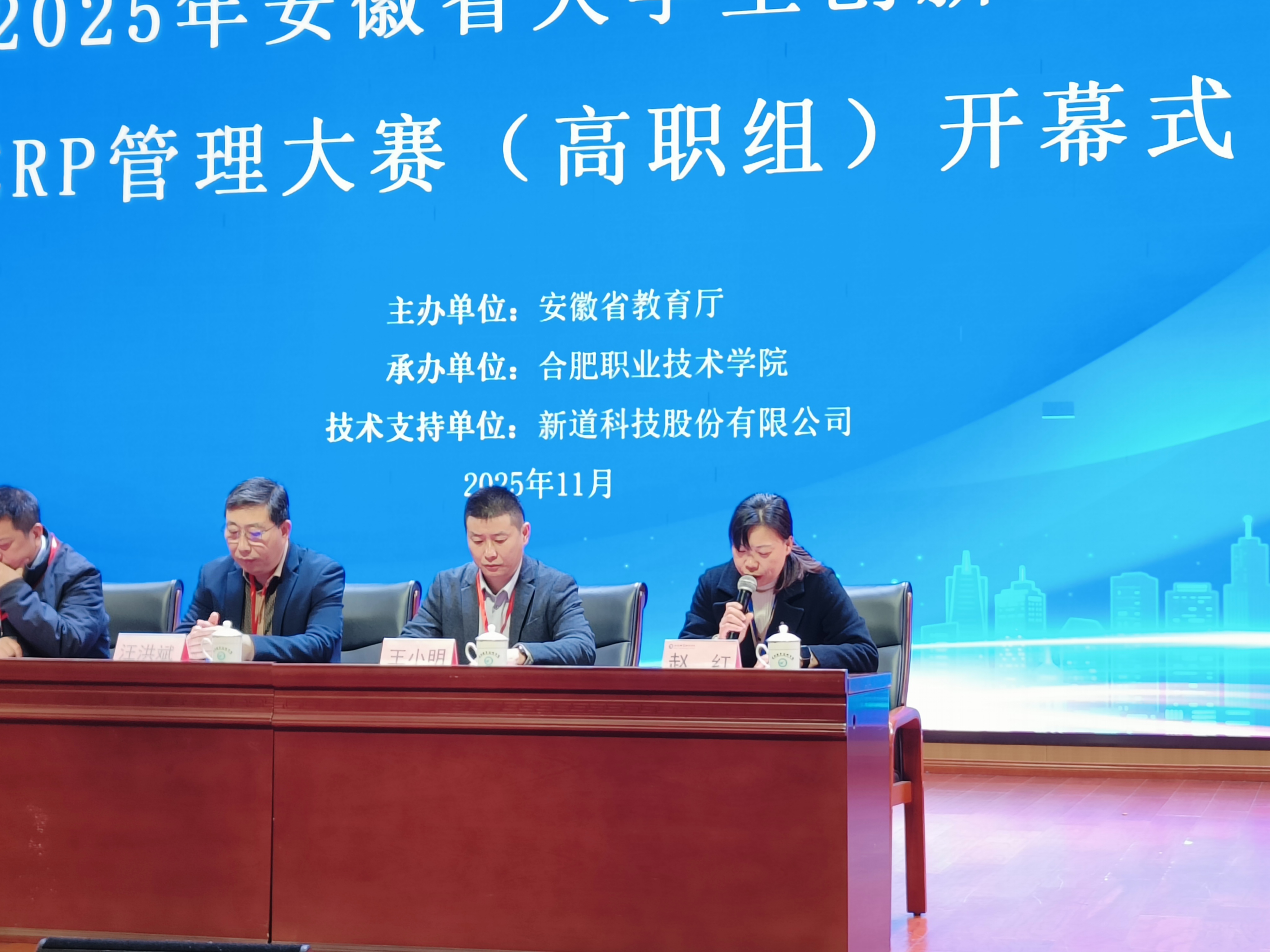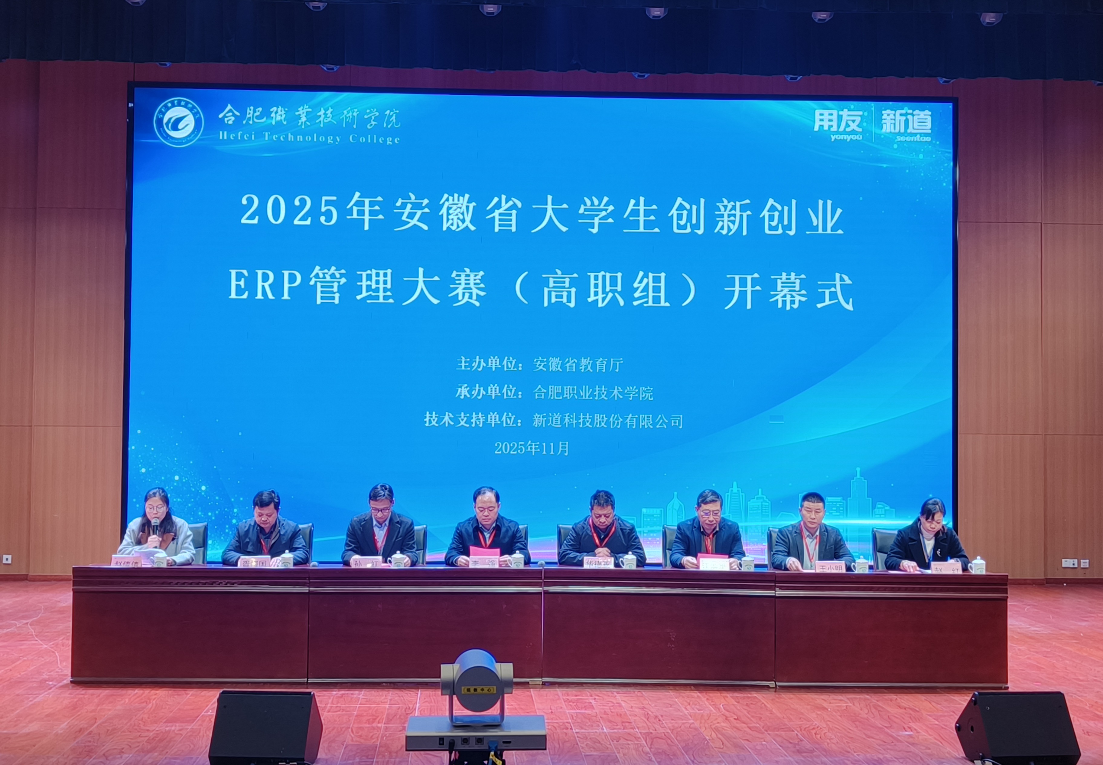 2025年11月22日,由安徽省教育厅主办、best365官方网站承办、新道科技股份有限公司提供技术支持的“2025年安徽省老员工创新创业ERP管理大赛(高职组)”在公司老员工活动中心报告厅圆满落幕。