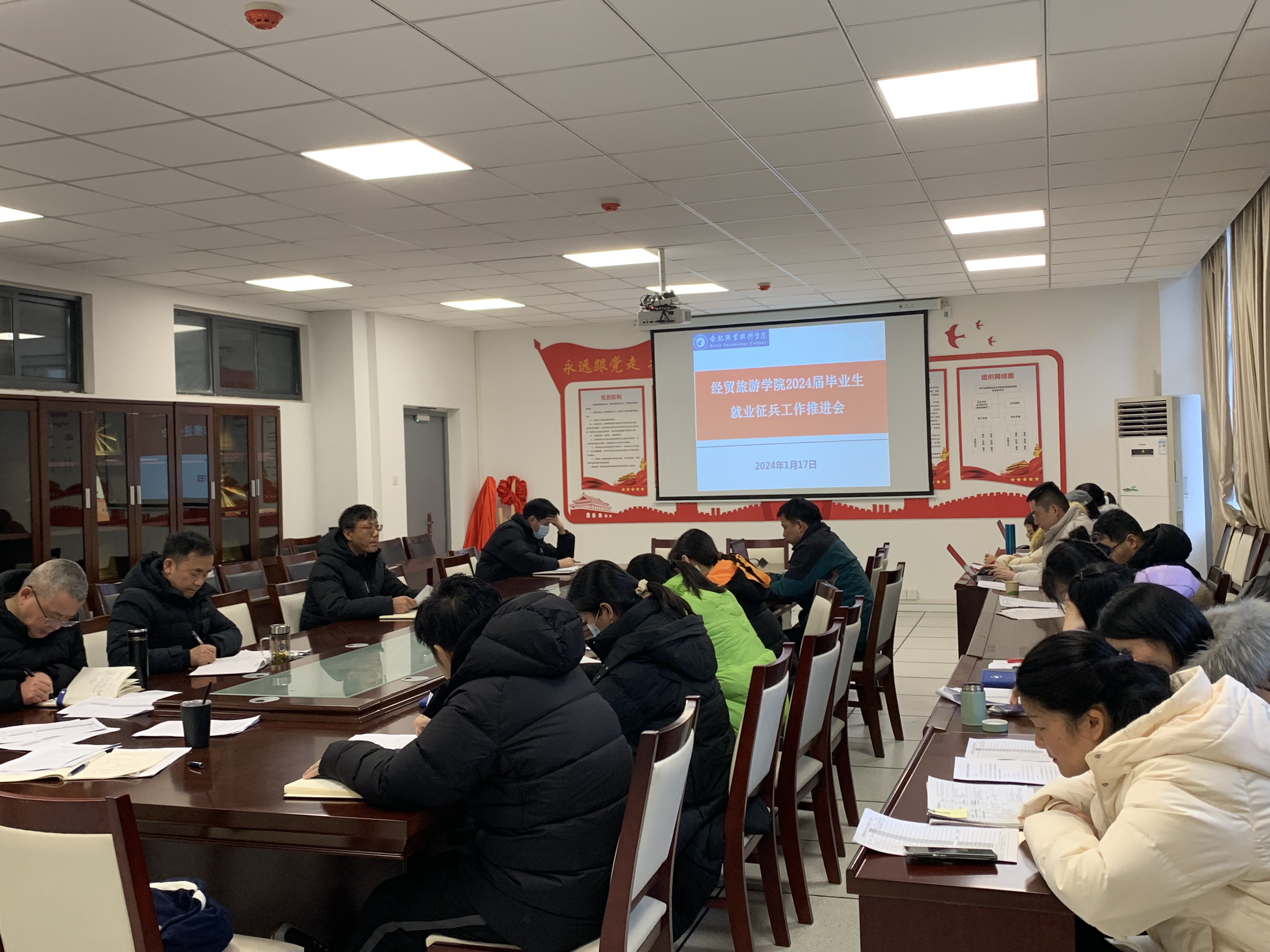 1月17日下午,best365官网在经贸楼党员会议室召开2024届毕业生就业征兵工作推进会,公司党总支书记梅亚松、副经理陈继林、综合办主任高荣明、各教研室主任、全体2024届毕业班辅导员等老师参加此次会议。