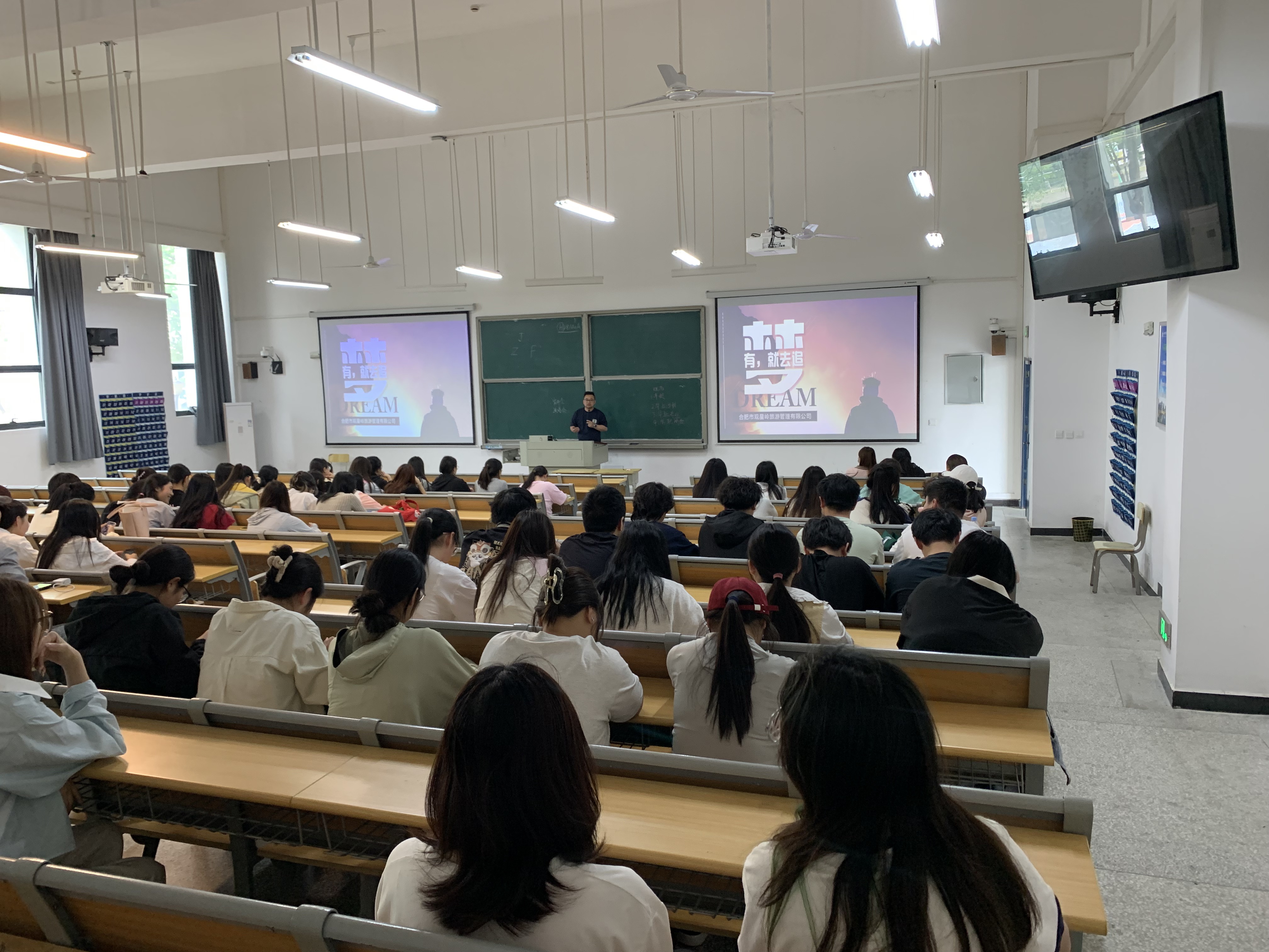 当天下午,企业宣讲会在教学北楼101教室举行。观星岭旅游管理有限公司代表通过视频、案例展示等形式生动呈现当地特色产业,如民宿酒店、特色农牧场、非遗文化传承等项目的发展机遇,并发布“基层治理助理”、“乡村文创设计志愿者”、“酒店管理运营”等岗位需求,吸引近100名员工参与。互动环节中,员工就食宿安排、实习待遇、工作岗位职责等问题踊跃提问,观星岭负责人阚磊也一一做了回答,并称赞到:“年轻人是乡村振兴的生力军,我们期待与高校联合开展田间课堂,让知识扎根泥土,让青春绽放乡野。”