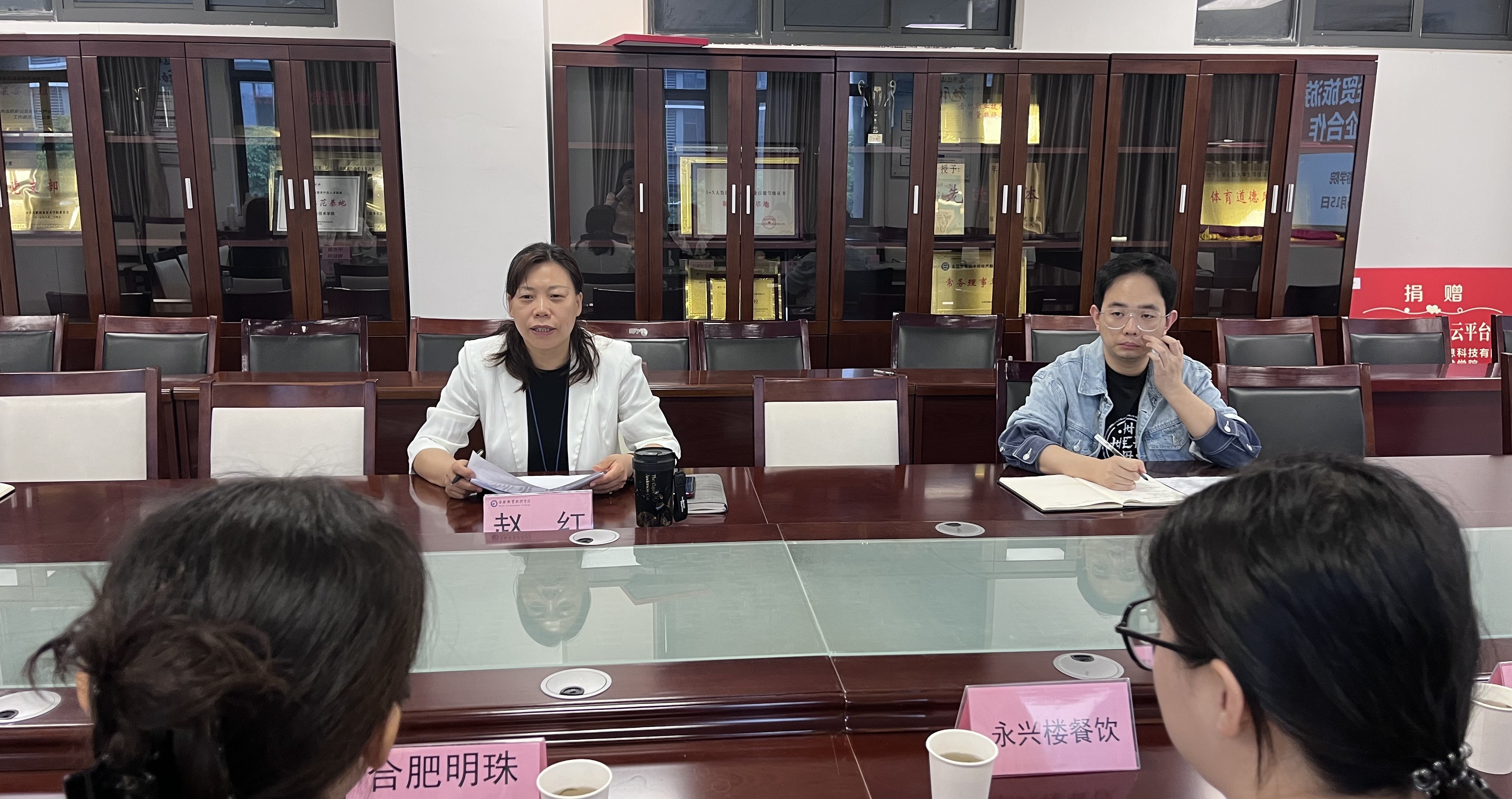 企业进校园作为贯通职业教育和就业市场的重要纽带,是深入践行党的二十大精神、创新驱动产教深度融合的战略举措,旨在构建校企协同育人新机制,促进教育链与产业链的有机衔接,实现人才培养与产业需求的双向赋能和可持续发展。为打造校企合作共赢、共谋发展的良好局面,5月15日上午9点,安徽通信产业服务有限公司终端渠道运营分公司、安徽顺丰通讯服务有限公司、安徽非羽网络科技股份有限公司、合肥中充服物联网科技有限公司、安徽永兴楼餐饮文化投资有限公司、合肥明珠悦居酒店管理有限公司等6家知名企业代表受邀到访best365官网,就员工实习就业、校企合作等事宜展开深入交流。best365官网经理赵红主持会议,教学办主任、就业负责老师、实习负责老师共同参会。